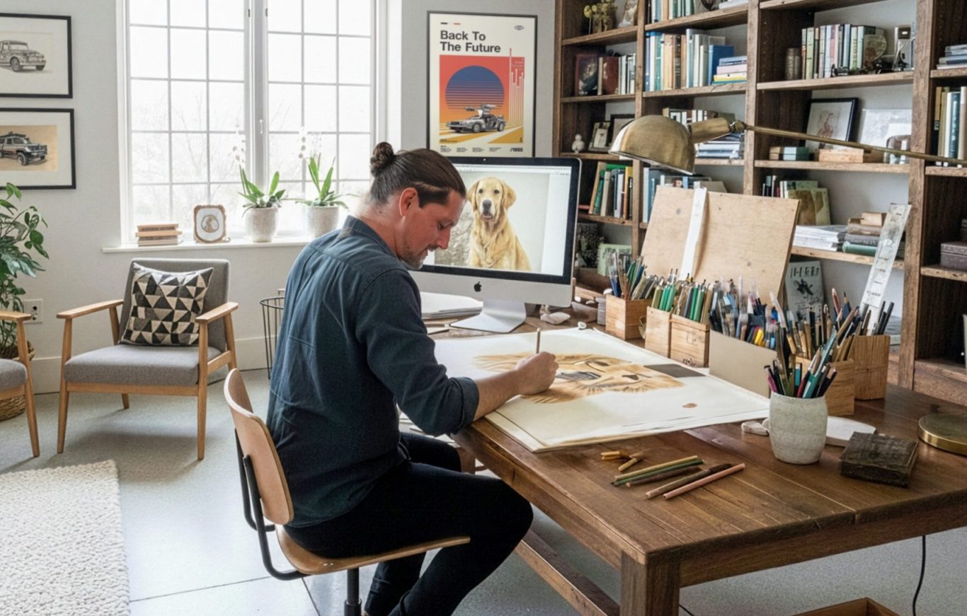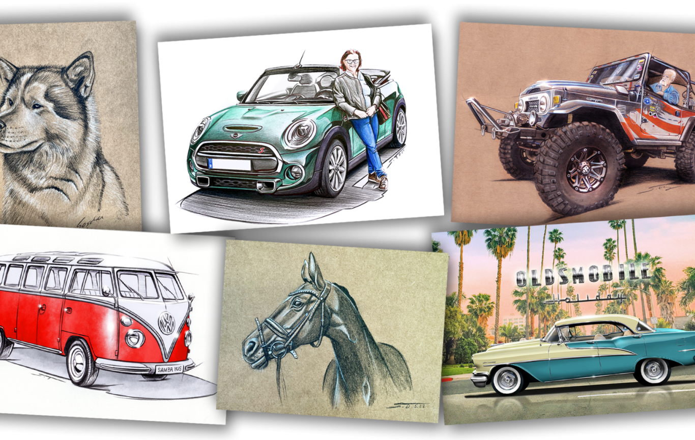 Aus dieser Kombination entwickelt sich auch meine zeichnerische Fähigkeit. Jedes Detail, jede Linie und jede Form wird bewusst gestaltet – sei es in professionellem Grafik- und Werbedesign oder in hochwertigen Handzeichnungen, von Fahrzeugen über Porträts bis zu Tierillustrationen.
